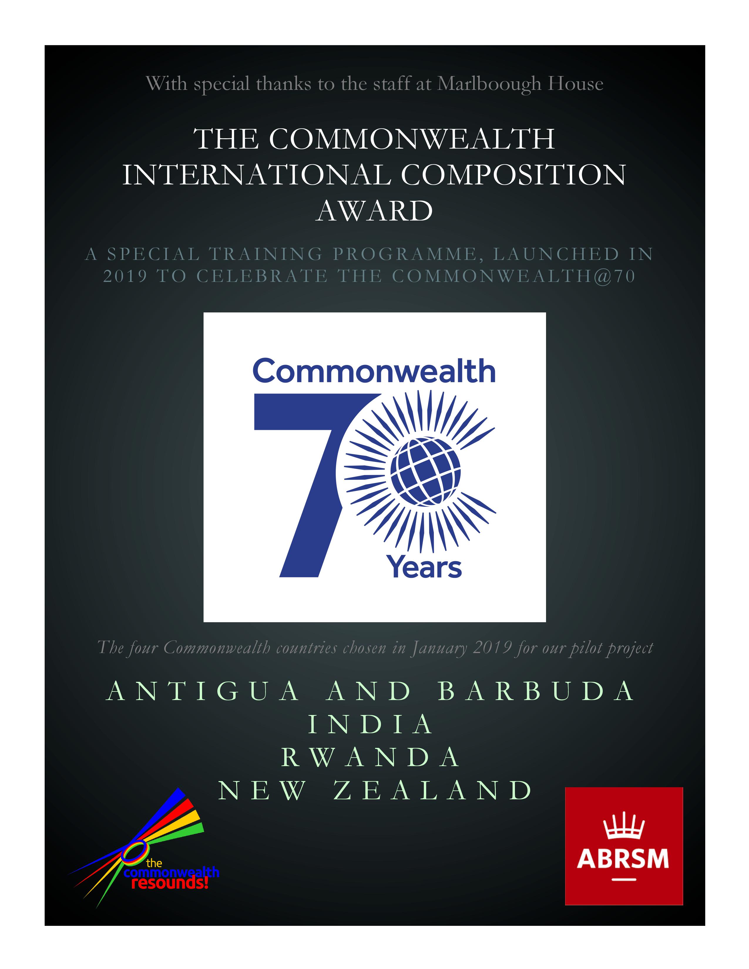 We are delighted to announce the official launch of The Commonwealth International Composition Award will take place on 30th April 2019, in Marlborough House.
