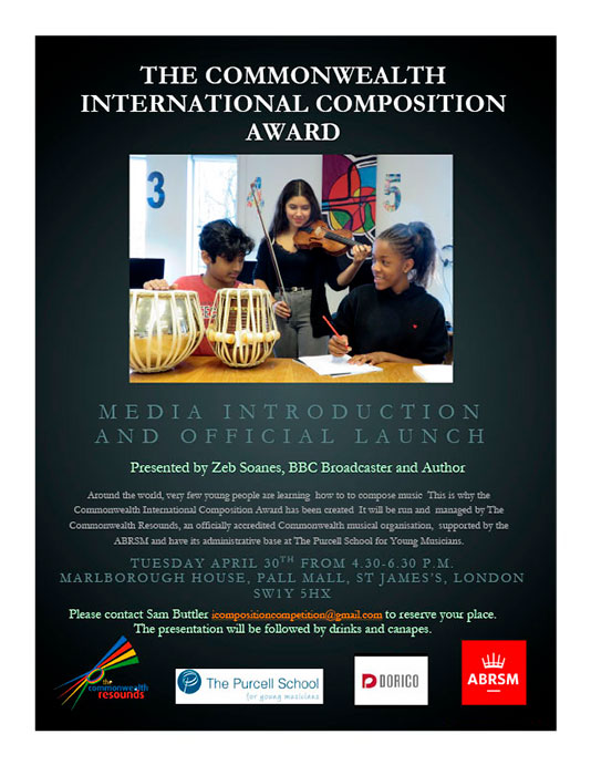 Around the world, very few young people are learning how to to compose music This is why the Commonwealth International Composition Award has been created. It will be run and managed by The Commonwealth Resounds, an officially accredited Commonwealth musical organisation, supported by the ABRSM and have its administrative base at The Purcell School for Young Musicians.